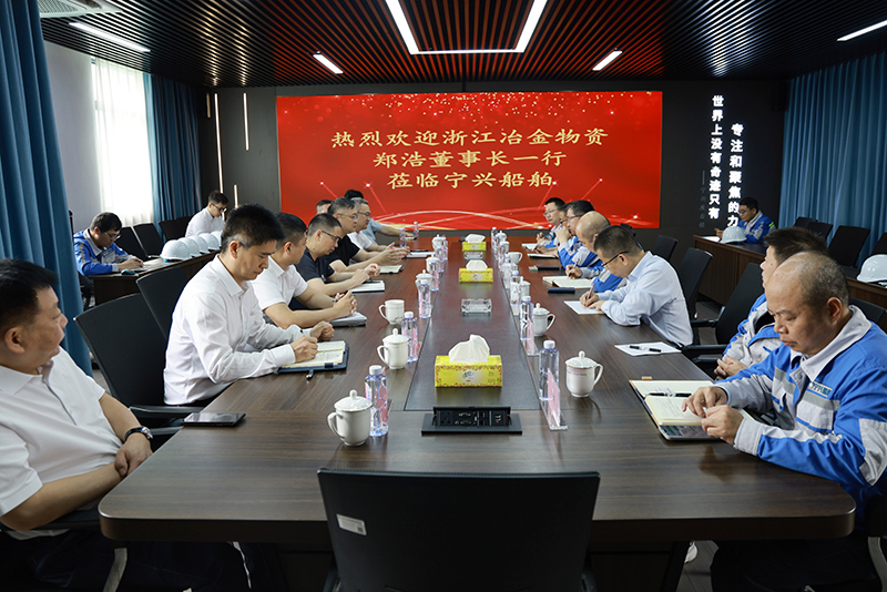 6月12日,冶金物資黨委書記、董事長鄭浩帶隊前往舟山寧興船舶修造有限公司進行實地調研。寧興船舶董事長王文彤、總經理江創(chuàng)宏等熱情接待,并陪同參觀交流。