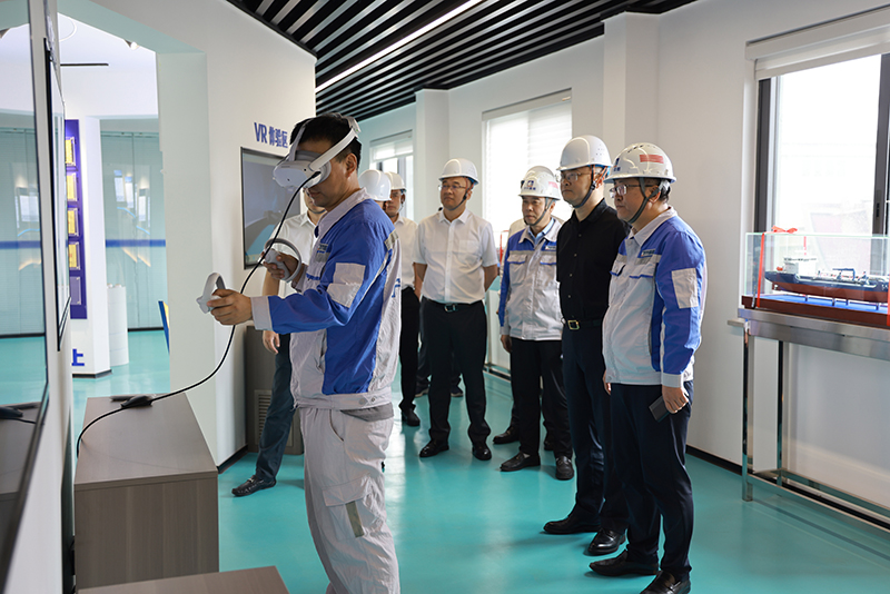 鄭浩一行參觀了VR體驗中心、船舶修造現(xiàn)場,感受寧興船舶數(shù)字化轉型升級的成效,并圍繞高附加值船舶修造、船舶智能制造配套中心等方面展開深入交流。此次考察增進了彼此的了解,為雙方后續(xù)在特種鋼材供應、零部件配套等領域合作提供實踐參考,進一步挖掘合作共贏的發(fā)展空間。