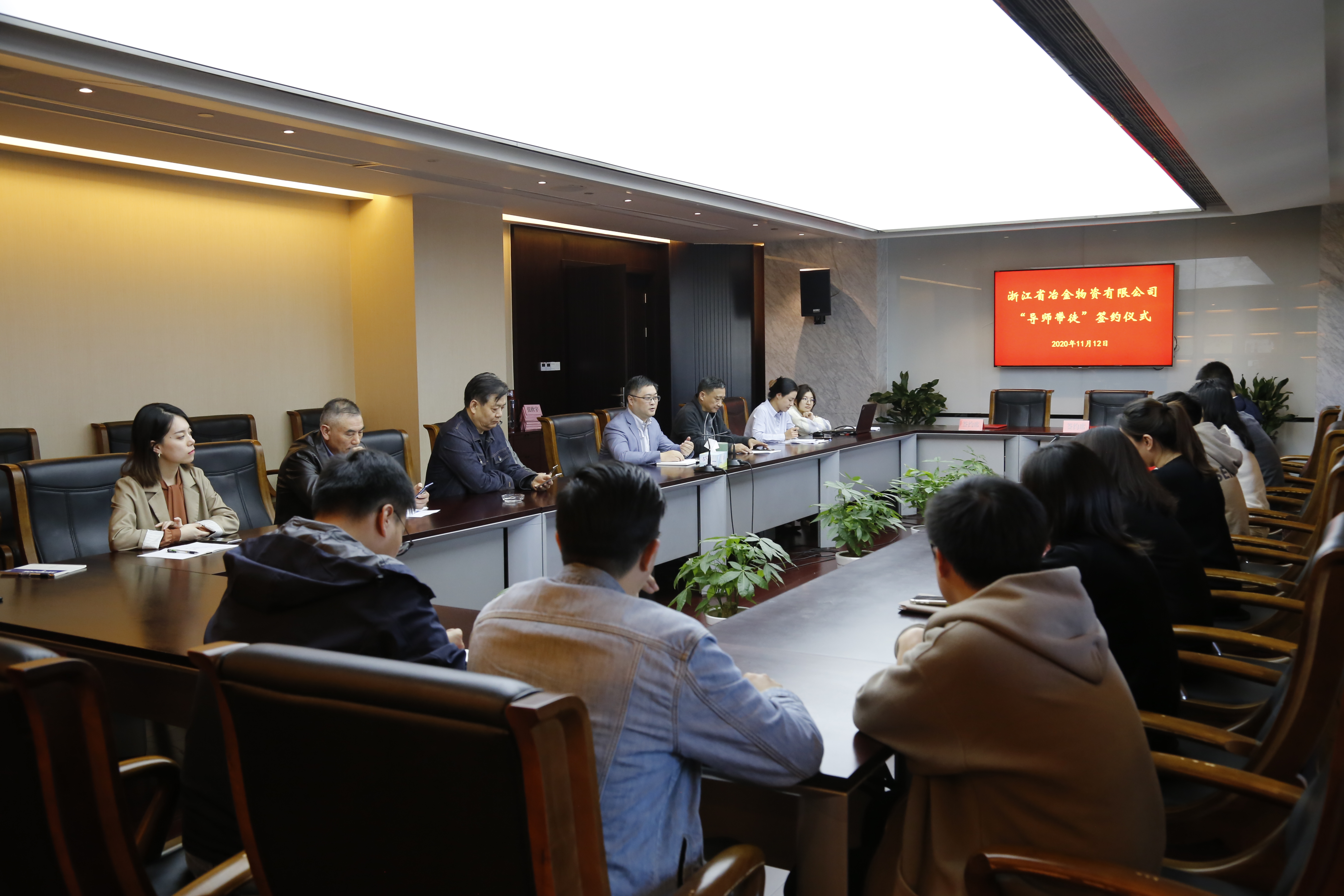 近日,浙江省冶金物資公司舉行2020年新職工“導(dǎo)師帶徒”簽約儀式。冶金物資公司黨委書記、董事長鄭浩出席簽約儀式并講話,儀式由工會主席鐘智萍主持。